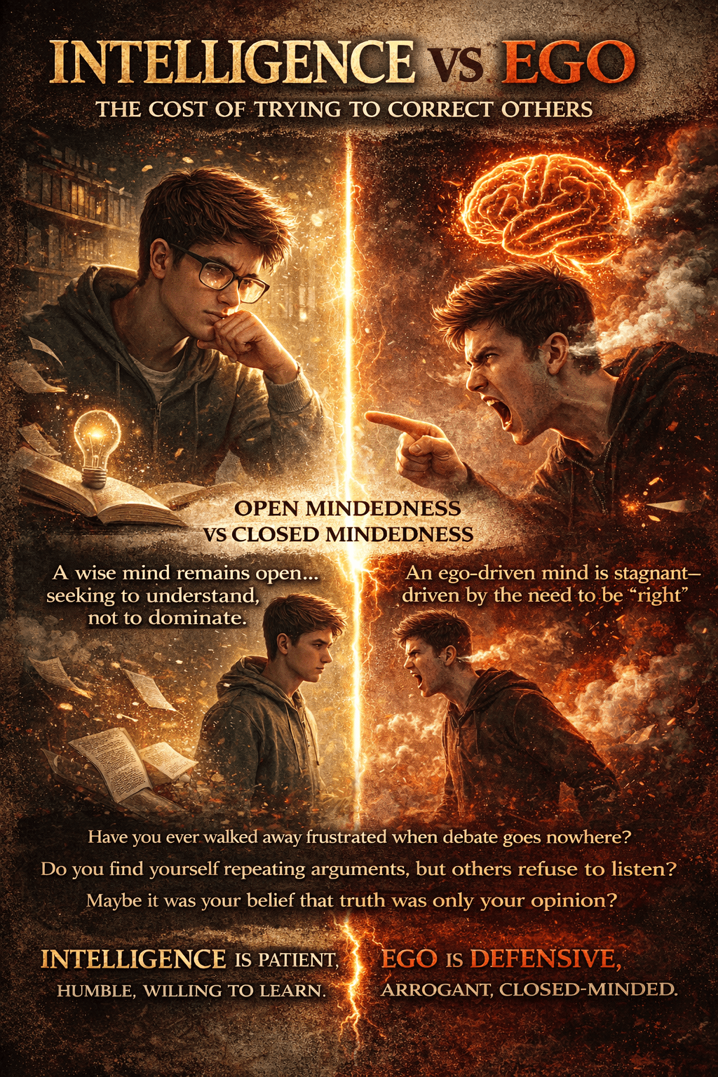 Psychology has long observed that human beings rarely argue about ideas alone. Beneath every debate move deeper forces: ego, belonging, fear of being wrong, and the unconscious need to preserve identity. Long before modern psychology gave these dynamics names, philosophical traditions understood that the greatest obstacles to understanding are often invisible to the one who carries them.