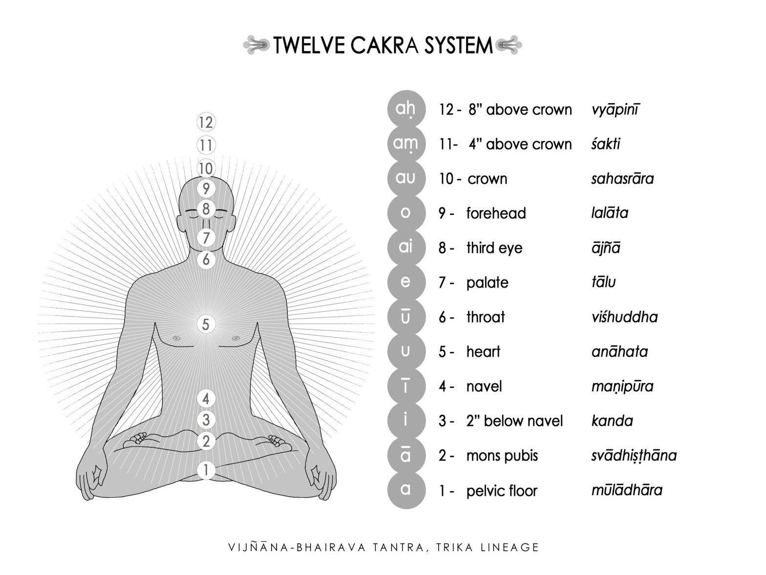 In this article we will examine a couple of verses from the Vijnana Bhairava; specifically verse 29 and 30, in relations to the 12 Chakras. This article is based on one of the most serious interpretations by Christopher Wallis. I like to share this because often people focus on awakening all 12 Chakras, which is…… Continue reading The 12 Chakras